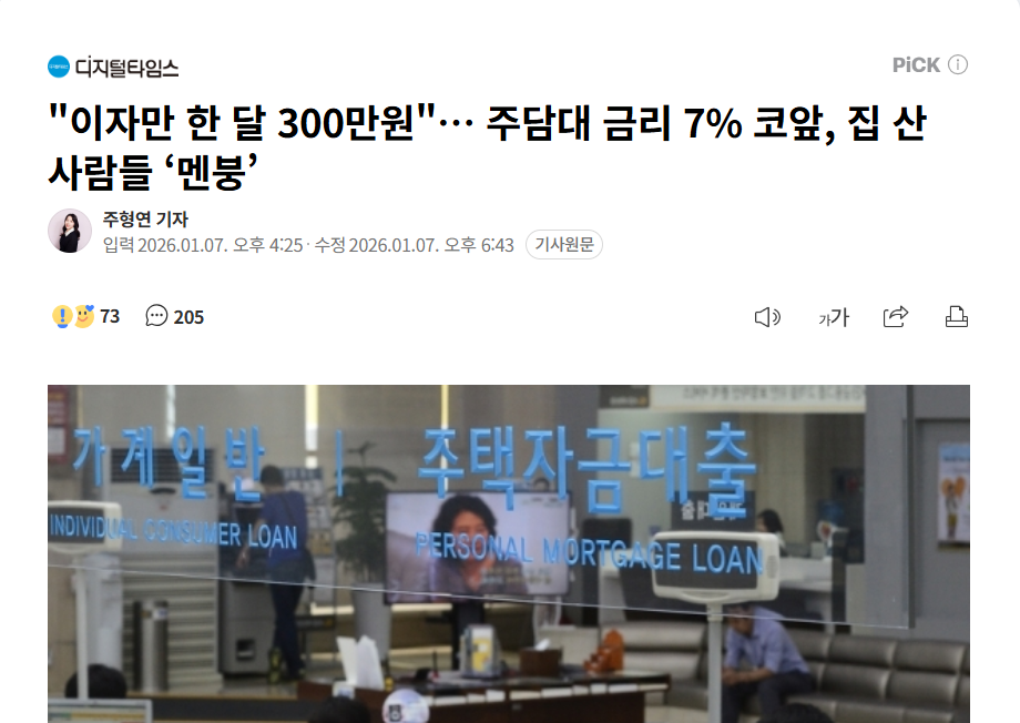 불과 몇 년 전 '제로 금리'에 가까웠던 시절을 생각하면 7%라는 숫자가 참 낯설고 두렵게 느껴지실 거예요.
