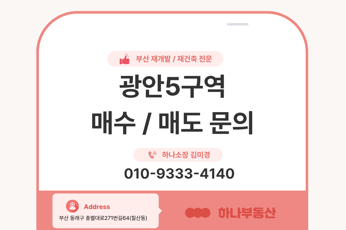 오늘은 광안5구역의 현재 상황과 입지, 사업성, 매물 전략까지
