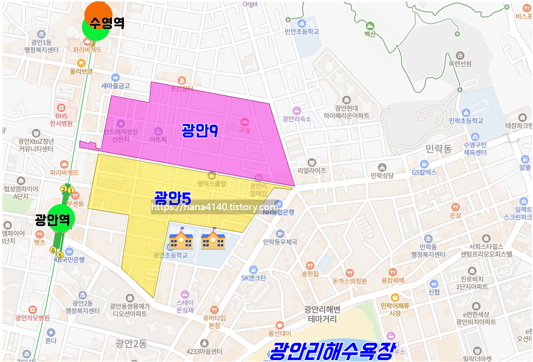 광안5구역은 지하철 초역세권 + 광안리 해변 + 평지 + 학세권이라는
