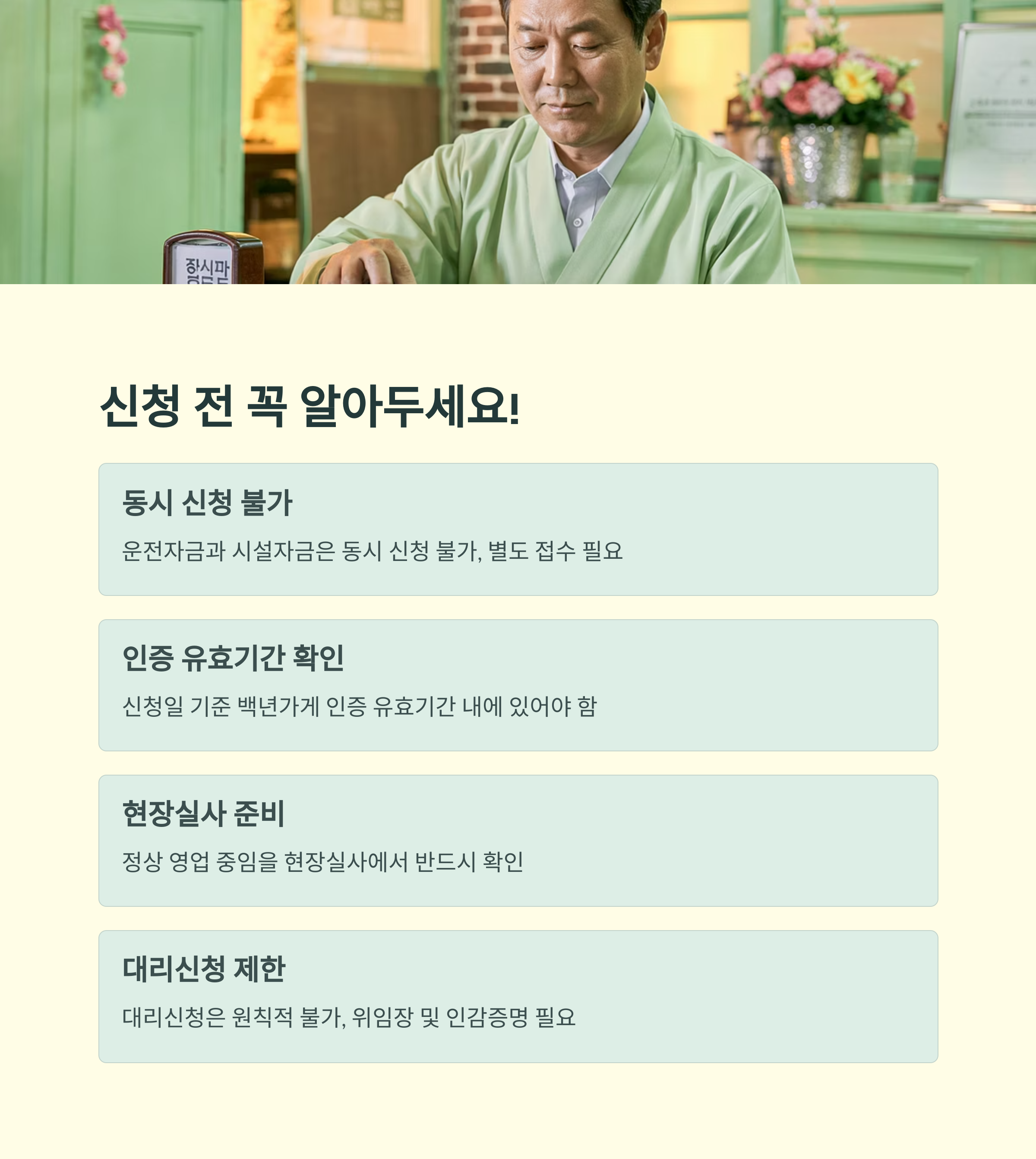 - 신청일 기준 백년가게 인증 유효기간 내에 있어야 함