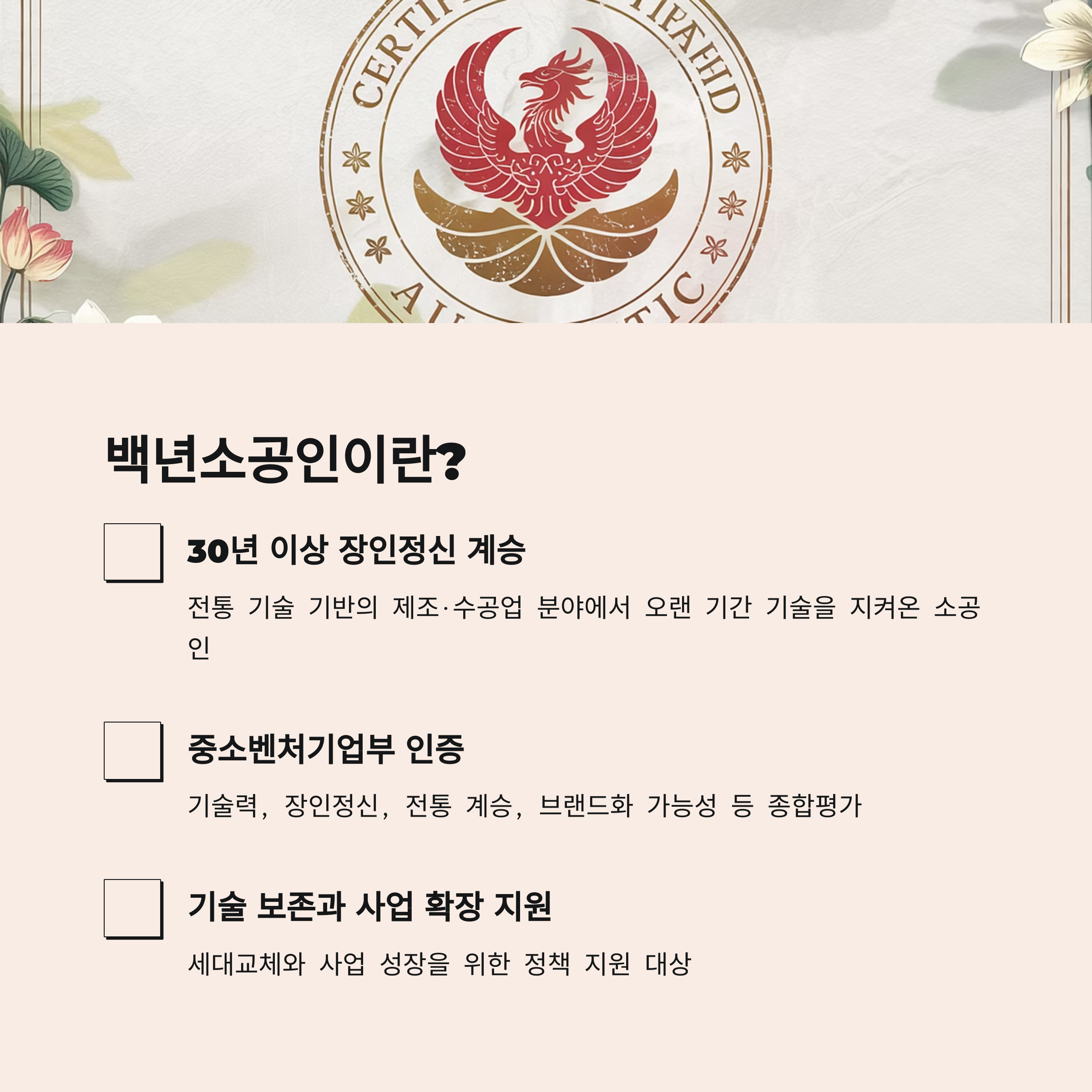 백년소공인 신청 자격 체크리스트