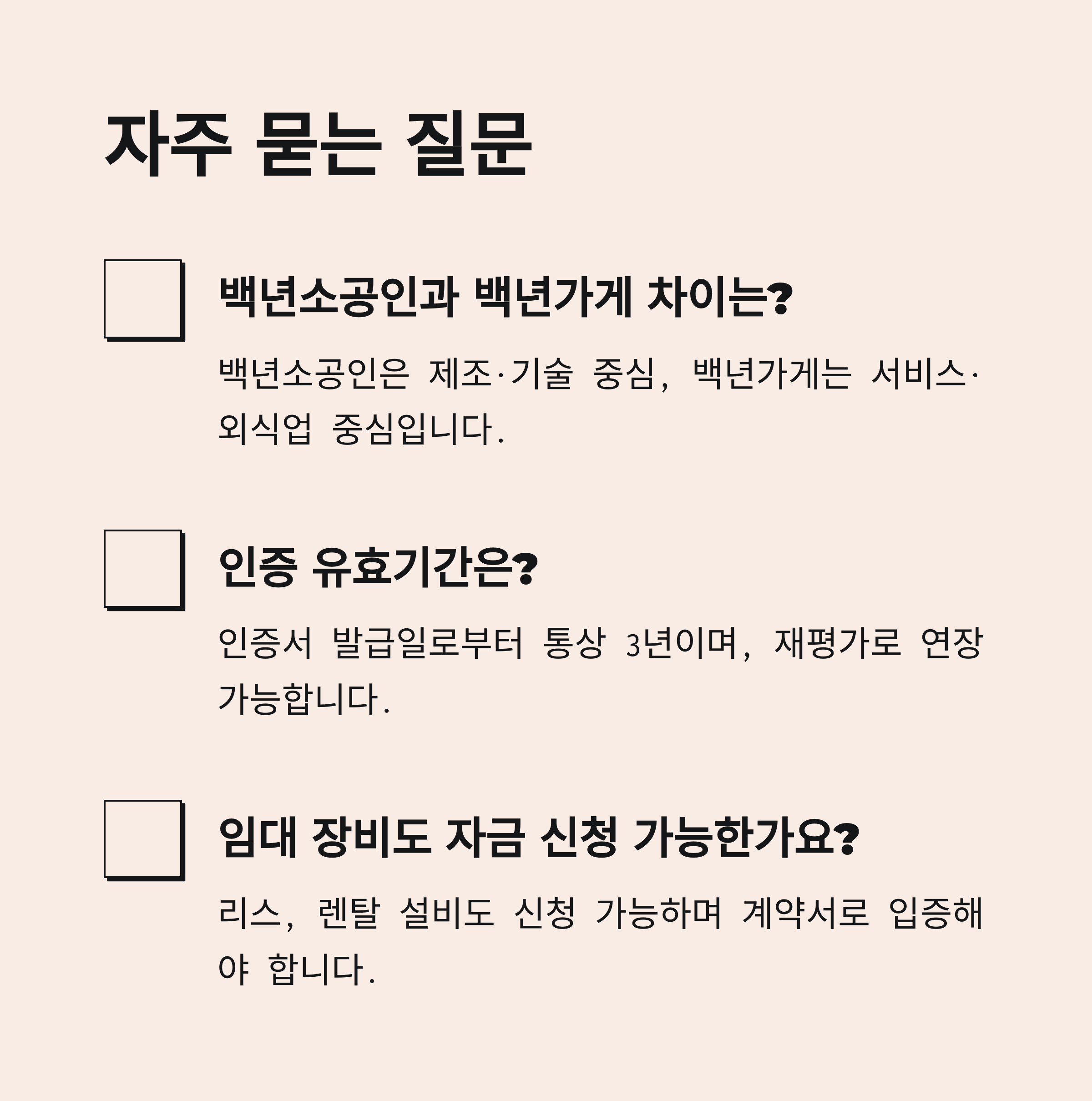 "위 항목을 충족한다면 백년소공인으로 자격 요건을 만족합니다."