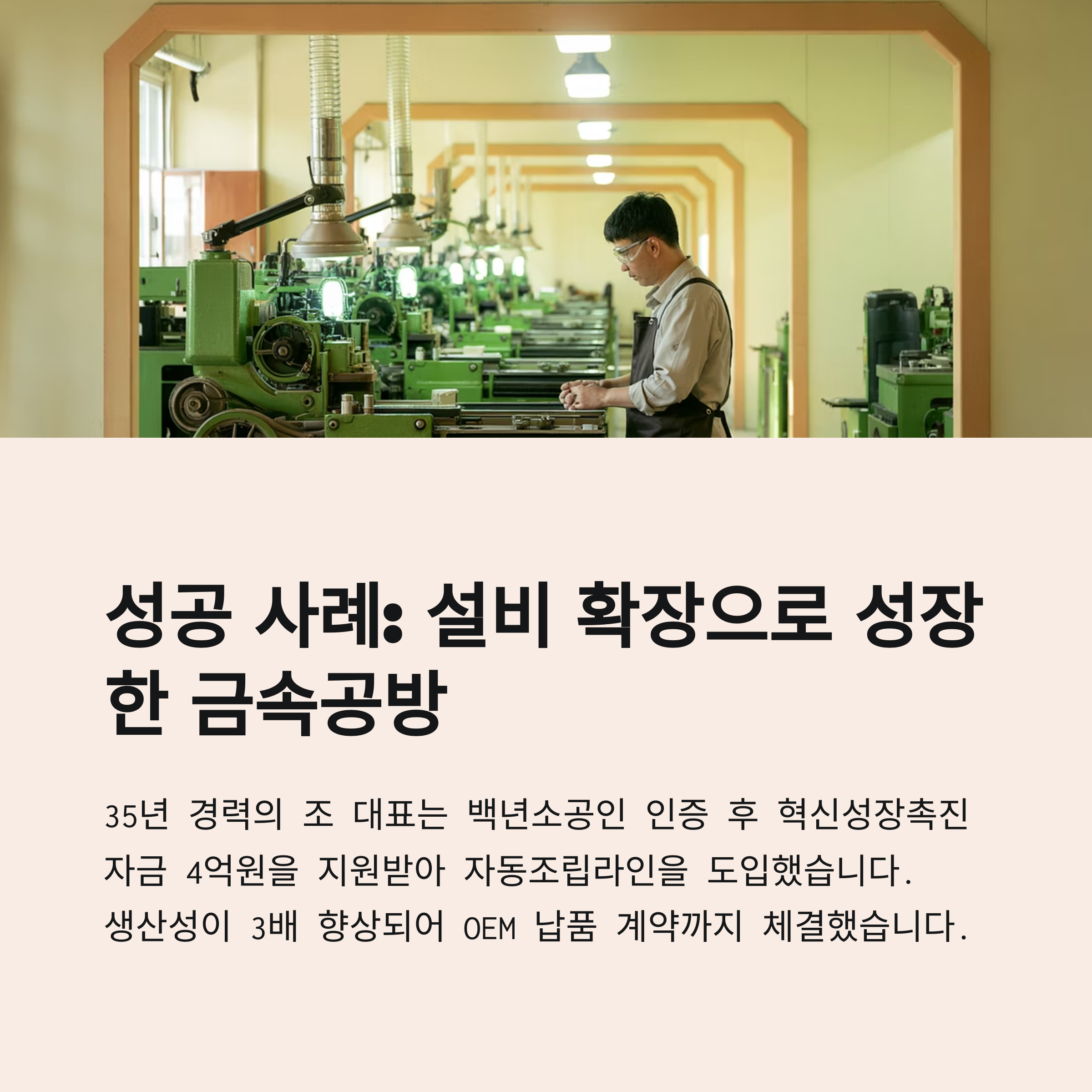 "기술 기반 장인 기업에게는 설비 교체와 생산 자동화 자금으로 적합합니다."