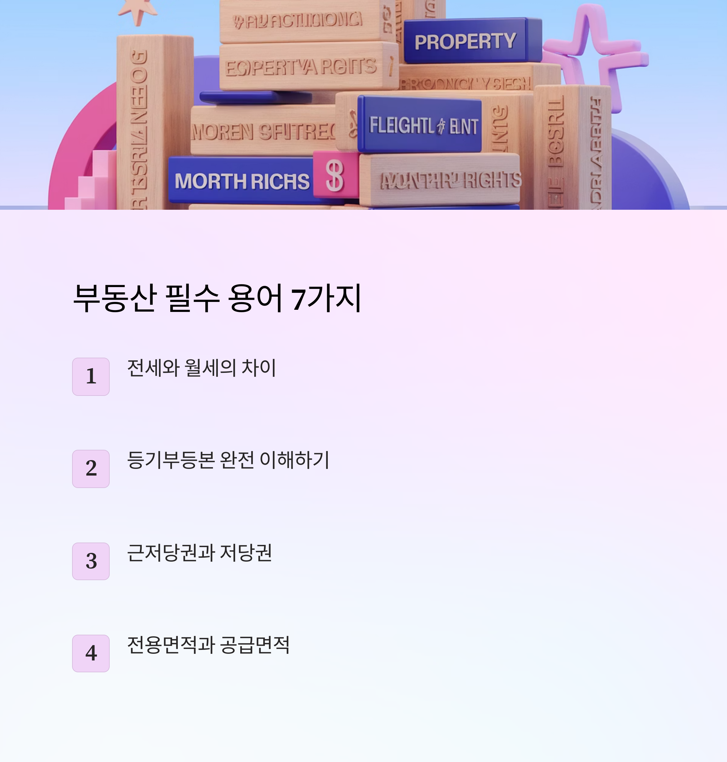 안녕하세요, 여러분! 저도 처음 부동산 계약할 때는 정말 막막했어요. 집을 알아보러 갔다가 ‘전세권’, ‘등기부등본’, ‘근저당’ 이런 단어들 들으면서 머릿속이 새하얘졌던 기억이 아직도 생생하거든요. 솔직히 말해서 ‘무슨 외계어야?’ 싶었어요. 그래서 오늘은 제가 직접 부딪히며 배운 부동산 필수 용어 7가지를 알기 쉽게 정리해드릴게요. 어렵게 느껴졌던 부동산 용어들이 이제는 한층 친숙하게 느껴지실 거예요!