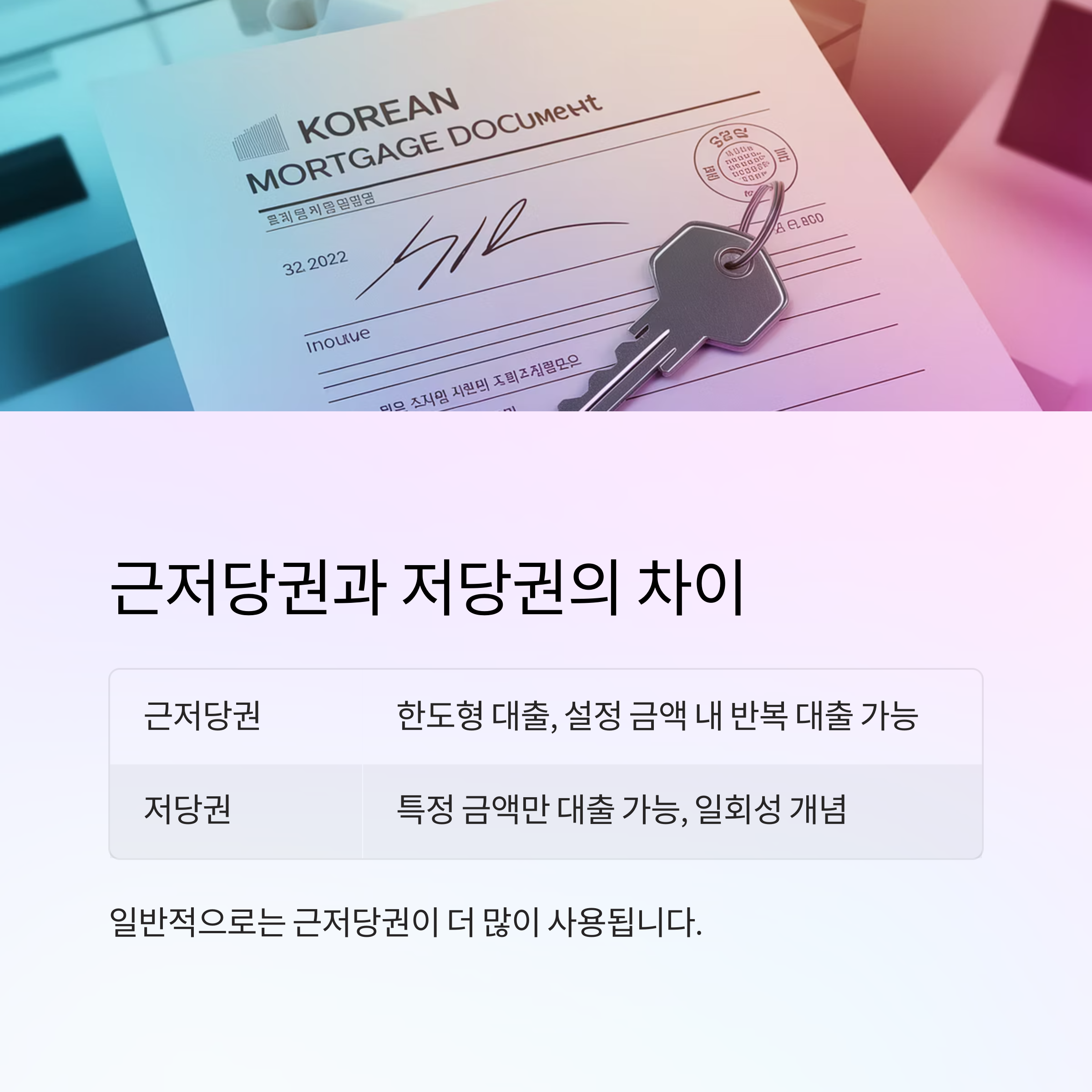 둘 다 대출할 때 담보로 설정하는 권리지만, 약간의 차이가 있어요. 이 차이를 알고 있으면 '대출 얼마까지 안전하지?' 같은 고민에도 도움이 되죠.