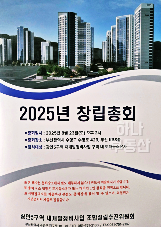 8월 23일, 광안5구역이 드디어 조합설립인가 총회를 맞이합니다.