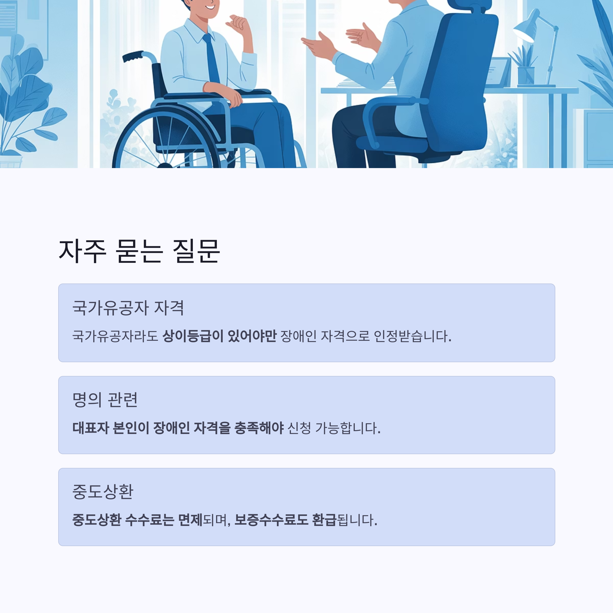 | 지원대상 | 장애인복지카드, 국가유공자(상이), 장애인기업확인서 소지자 |
