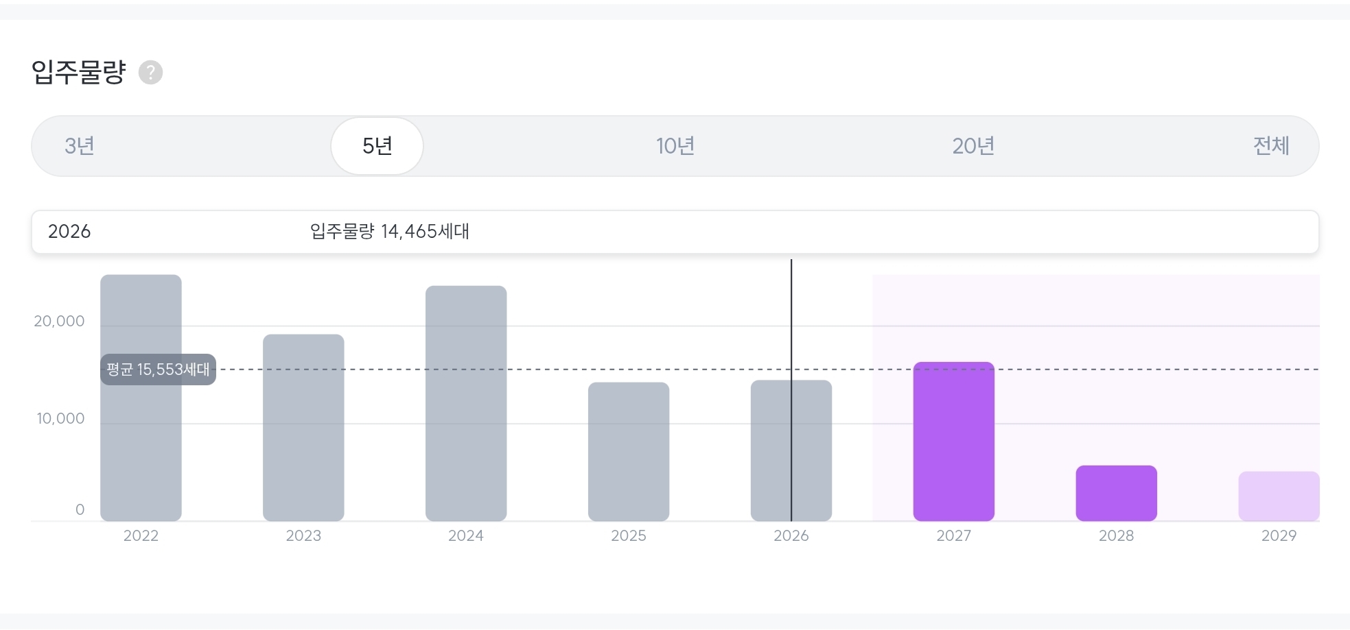 - 2년 이내 인근 지역에 예정된 대규모 입주 물량이 있는지 파악하기