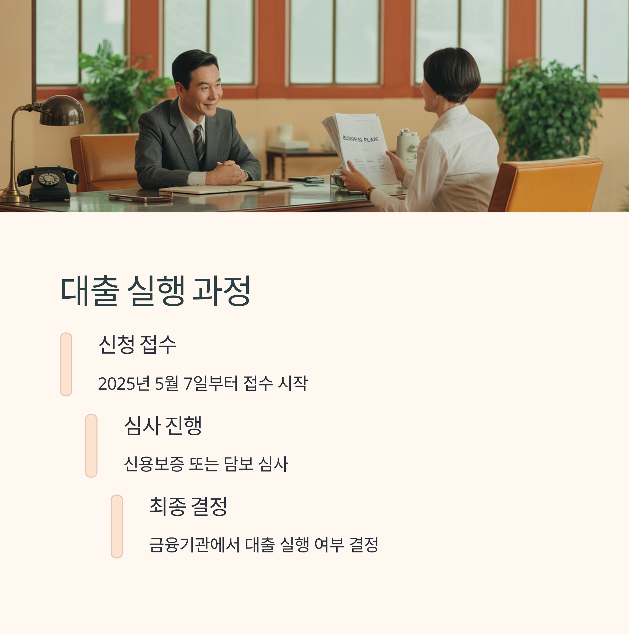 대출 실행은 신용보증 또는 담보 심사를 통해 금융기관에서 최종 결정됩니다.