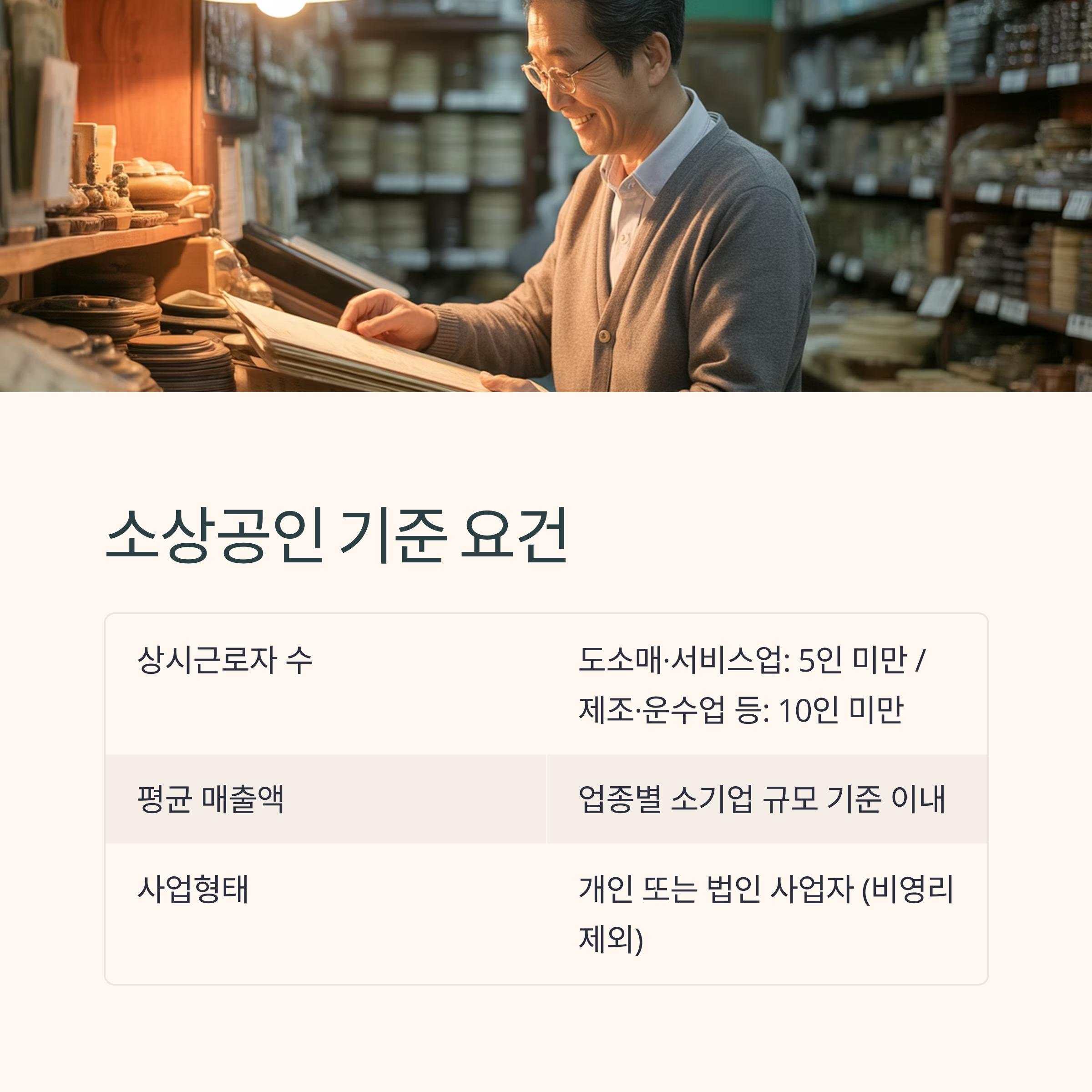 청년고용연계자금을 받으려면 소상공인 기준에 부합해야 하며, 기본 요건은 다음과 같습니다.