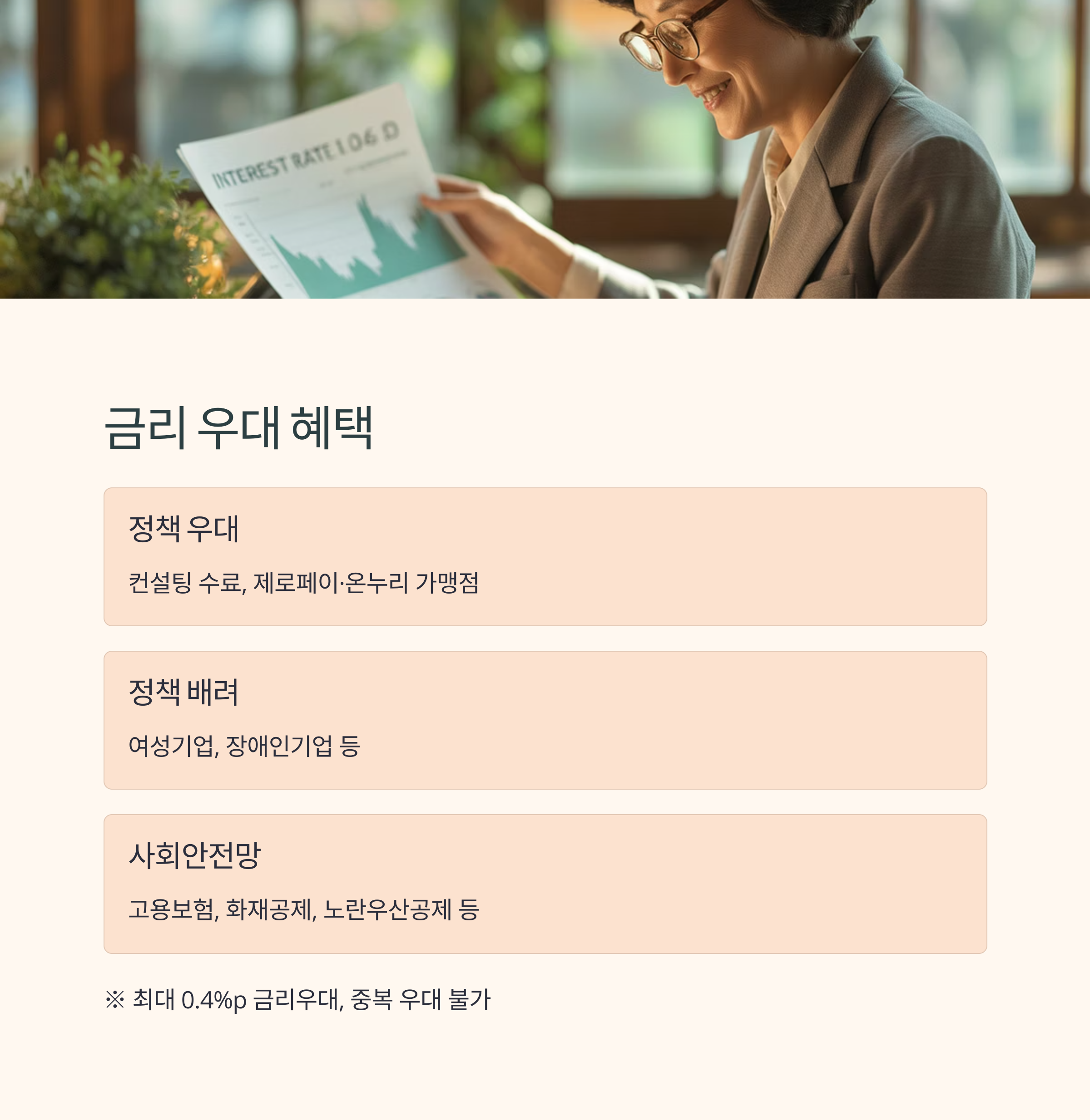 지원 대상이면서 다음 요건 중 하나에 해당하면 최대 0.4%p 금리우대를 받을 수 있습니다.
