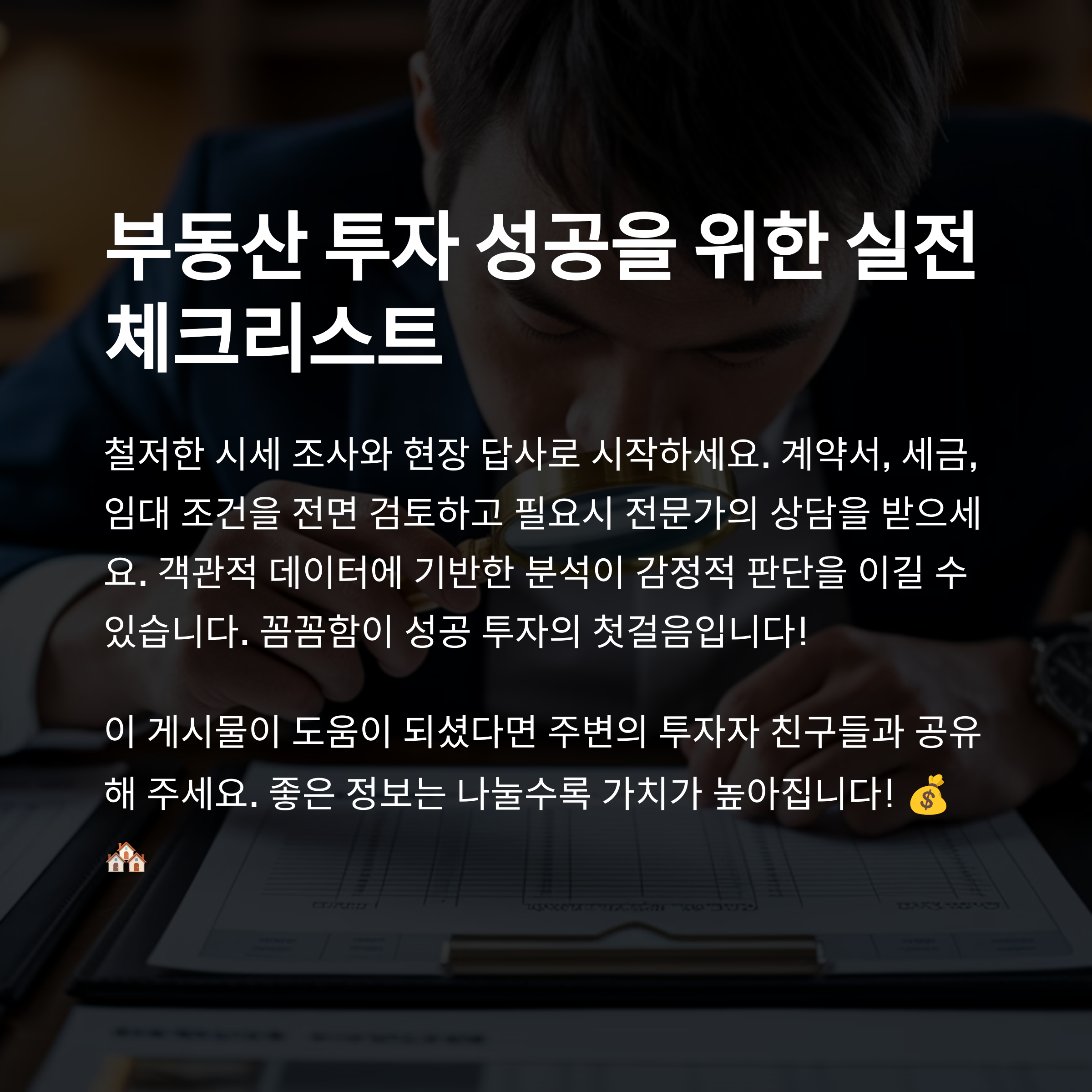 꾸준한 공부, 주변 시세 조사, 실수요 중심 투자, 전문가 상담 등을 병행해야 성공 확률이 높아집니다.