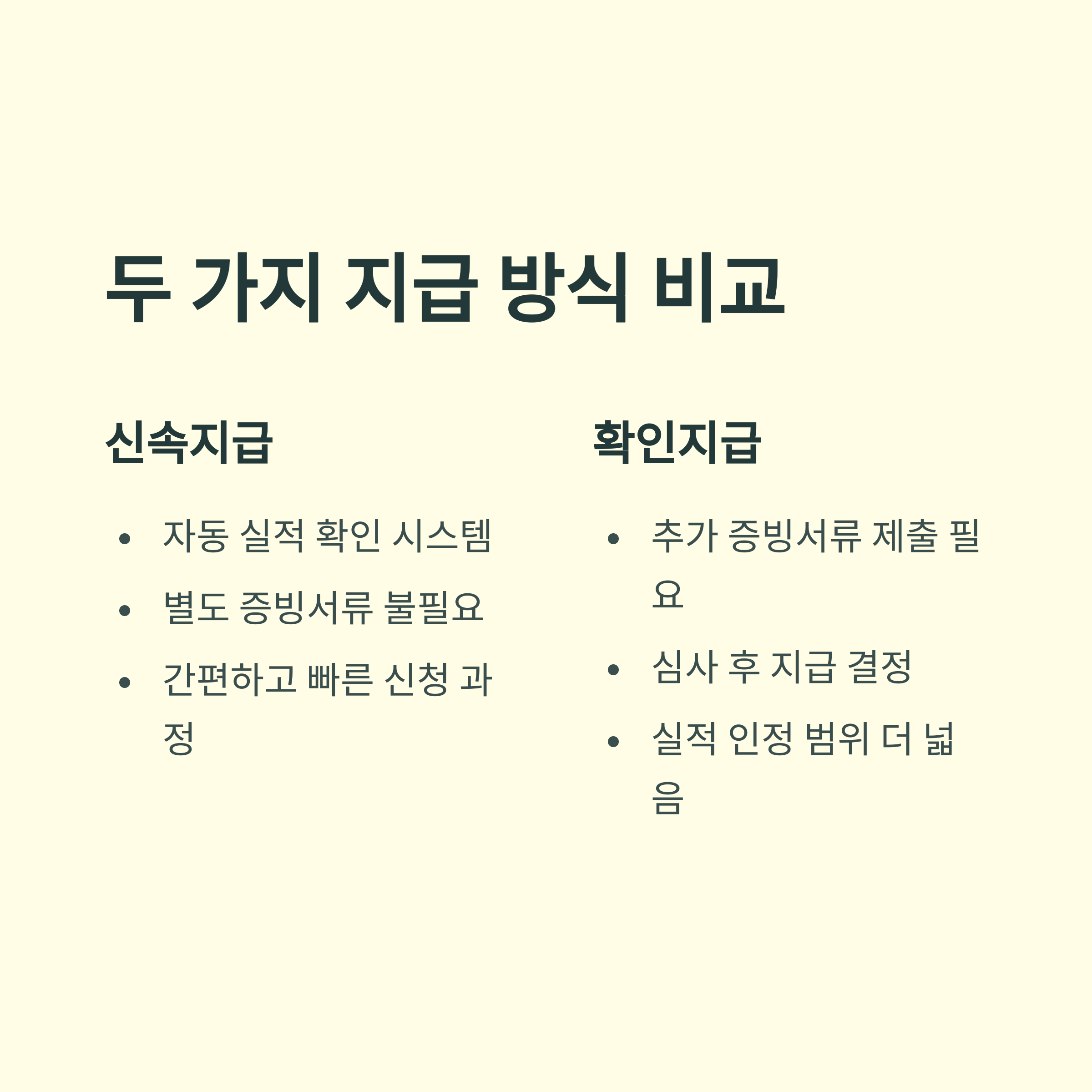 지원은 신속지급과 확인지급 두 가지 방식으로 진행되며