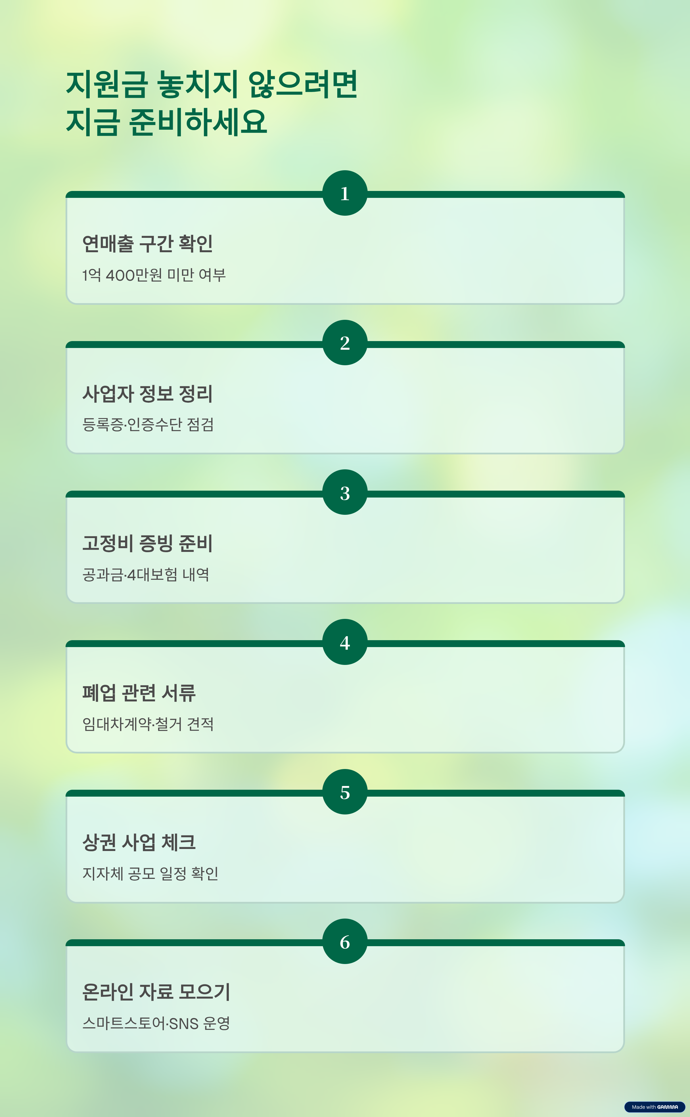 특히 폐업 예정자, 연매출 1억 400만 원 미만 영세 소상공인은 반드시 체크해야 할 항목들이 포함돼 있습니다.