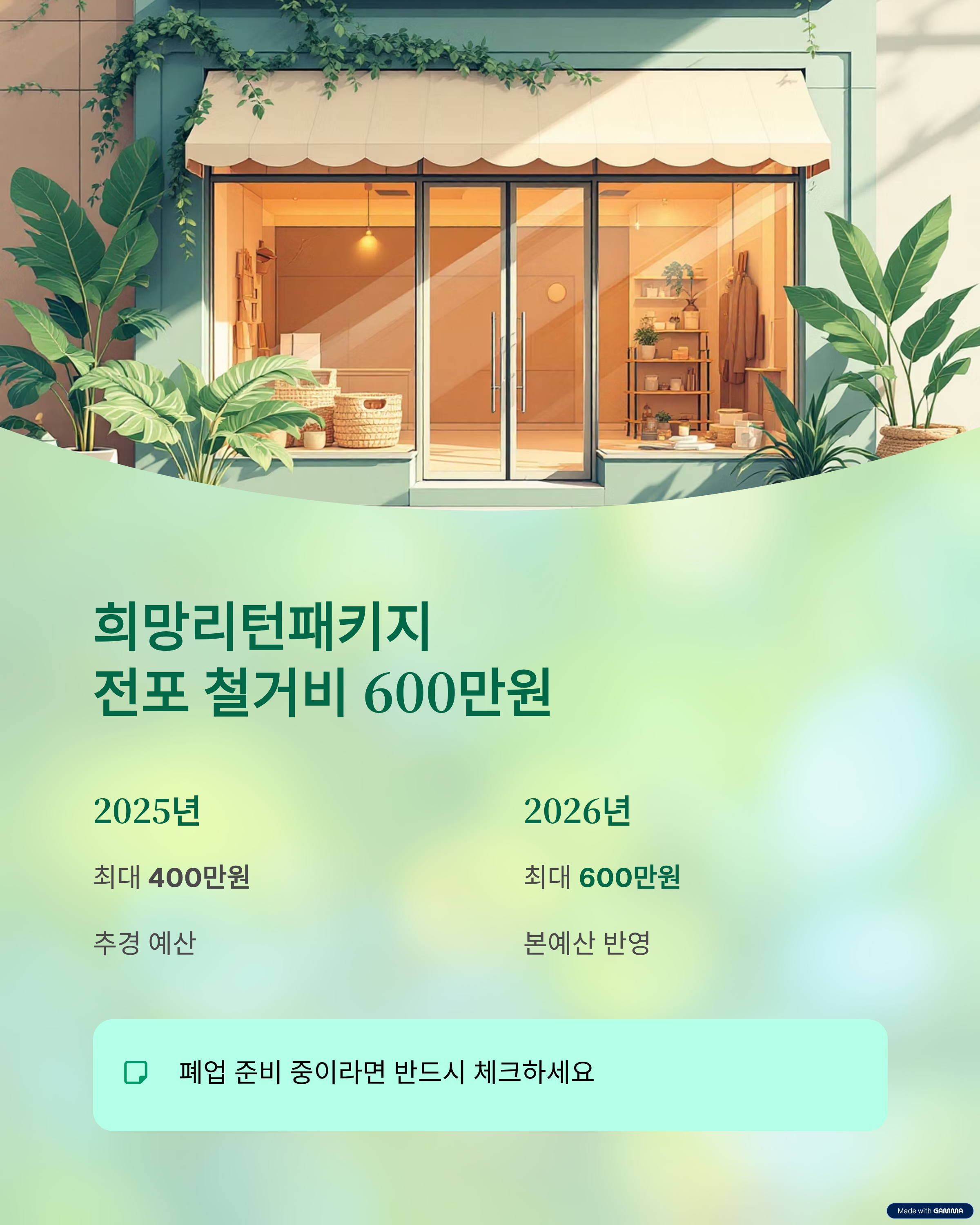 2026년에는 여기서 가장 눈에 띄는 변화가 하나 있어요. 바로 전포 철거비 지원 한도가 최대 600만 원까지 확대된다는 점입니다.